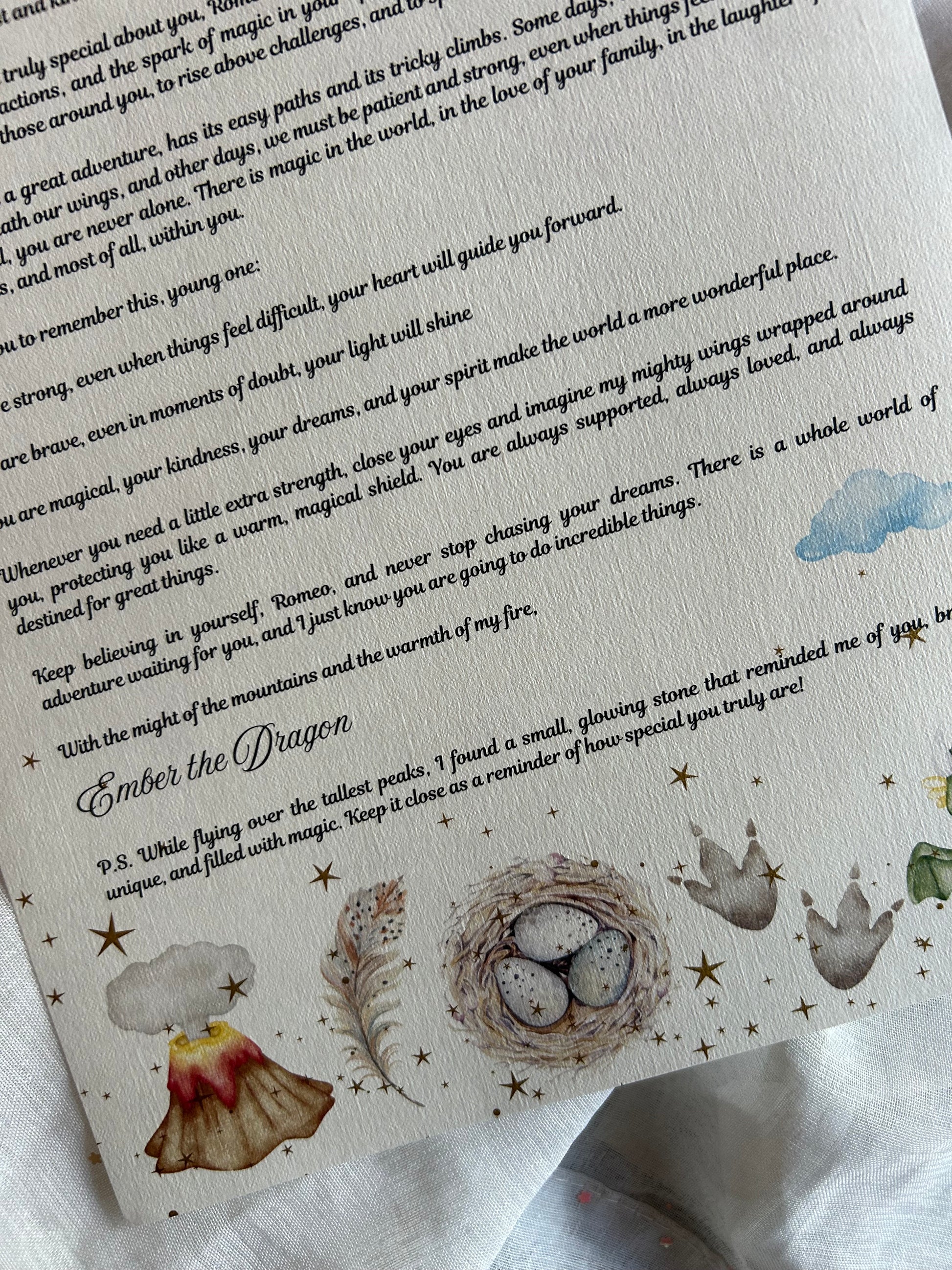 Send a piece of Dragon’s Peak to your child with a magical letter from Rhyx the Dragon! This powerful keepsake celebrates their inner courage, encouraging them to embrace their strength and grow into the incredible person they are meant to be. Full of fire and wisdom, this letter is the perfect gift for any young adventurer.
